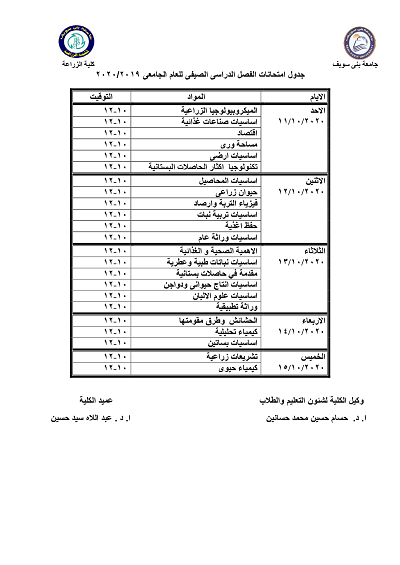 Schedule of summer semester exams for the academic year 2019-2020